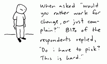 So we adapt to our troubles.  We try to work around them.  We convince ourselves that we are not capable of change.  We think it’s not really that big a problem.  Or that it’s not our problem, it’s somebody else’s problem.  Or we tell ourselves that the problem is not on the inside but on the outside—a problem of circumstance or geography.  Maybe if we move to another city or change our job or our spouse or our financial situation, things will get better.  And, more and more, we come to believe these rationalizations so we feel less compelled to change.  But underneath it all, buried under all of these adaptations, we have a catastrophic fear of change.  We believe it will only make things worse.